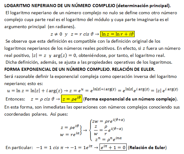 Nuestro profesor nos ha explicado los números complejos de una manera distinta de la que se da en bachillerato y no lo entiendo muy bien. Nos lo ha enseñado todo utilizando la formula de Euler(1+eπi=0), la forma trigonométrica(eiθ=r•(cosθ+i(senθ)) y la forma polar (z=r•eiθ)
