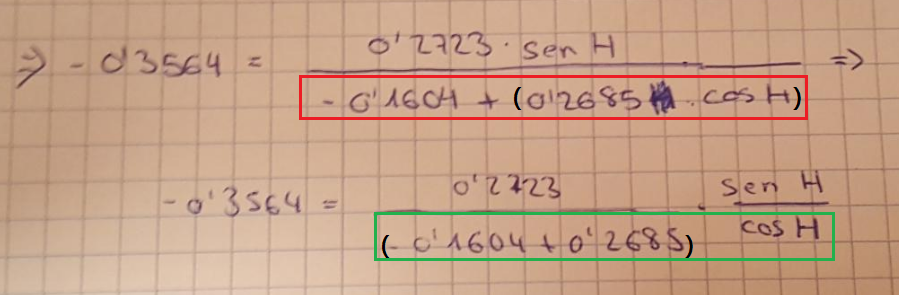 extraemos denominadores comunes en los agrupamientos de los primeros miembros en ambas ecuaciones y queda: