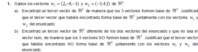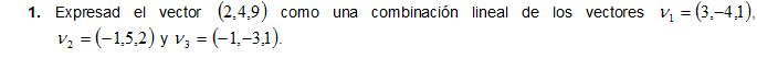 b) Puedes plantear un tercer vector como combinación lineal de los dos vectores del enunciado, por ejemplo: