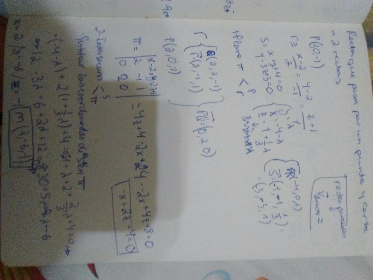 He hecho el ejercicio del vídeo de la recta que pasa por un punto y dos rectas (http://www.unicoos.com/video/matematicas/2-bachiller/rectas-y-planos/ecuaciones-de-rectas-y-planos/recta-que-pasa-por-un-punto-y-corta-otras-dos-rectas) pero he cambiado el orden en el que cojo las rectas (en el primer paso cojo la recta que él había reservado para el siguiente y viceversa) y me ha salido la recta final con x y z equivalentes pero la y cambiada. ¿Alguien sabe qué tengo mal?![]()