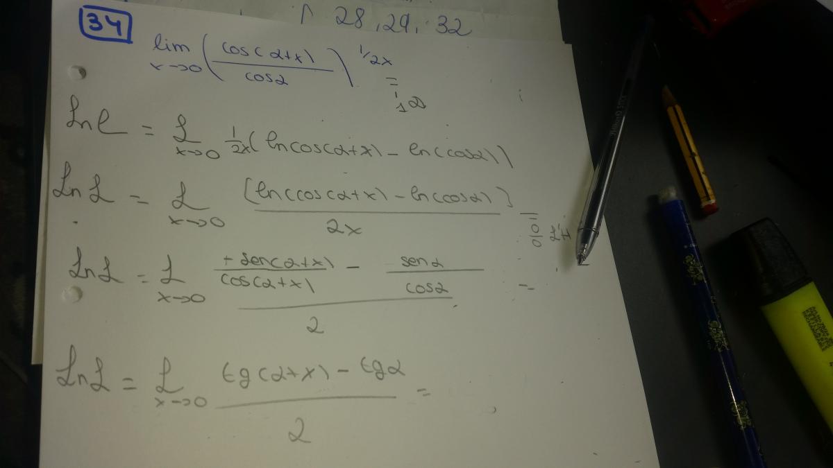 cos(a+x) = cosa*cosx - sena*senx (coseno de la suma de dos ángulos),