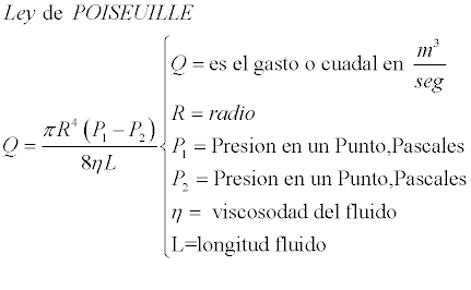 Poiseulle estableció experimentalmente que la resistencia al flujo de la sangre en una arteria es directamente proporcional a la longitud de arteria e inversamente proporcional a la cuarta potencia de su radio.La constante de proporcionalidad estará determinada por la viscosidad de la sangre