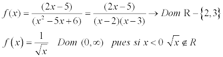 ¿que diferencia existe a la hora de calcular el dominio entre una función racional (ejemplo: f(x)=(2x-5)/(x^2-5x+6) ) y una función cociente (ejemplo: f(x)=1/(raiz de x) ) ?