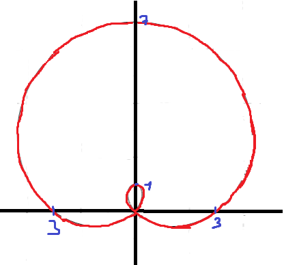 la grafica me queda asi.. y la tangente al polo me da 0.68 pero no entiendo de donde hasta donde tengo que integrar