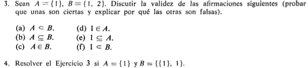 (f) Falsa. Como que 1 no es un conjunto, no podemos tener 1 ⊂ A.