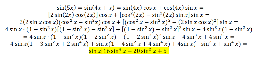 Sen (5x)= Sen (x) [ 16 Sen4(x) - 20 Sen2 (x) + 5 ]