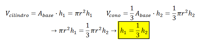 Un cilindro circular recto y un cono circular recto tienen a r como el radio de sus bases y ambos cuerpos tienen el mismo volumen, entonces la relación entre la altura del cilindro y la altura del cono circular recto es....