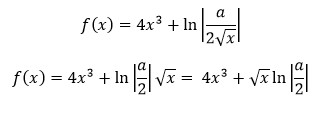 Buenas noches, en este caso la función a derivar es: f(x)=4x3+ln a/2√x (a es una constante)