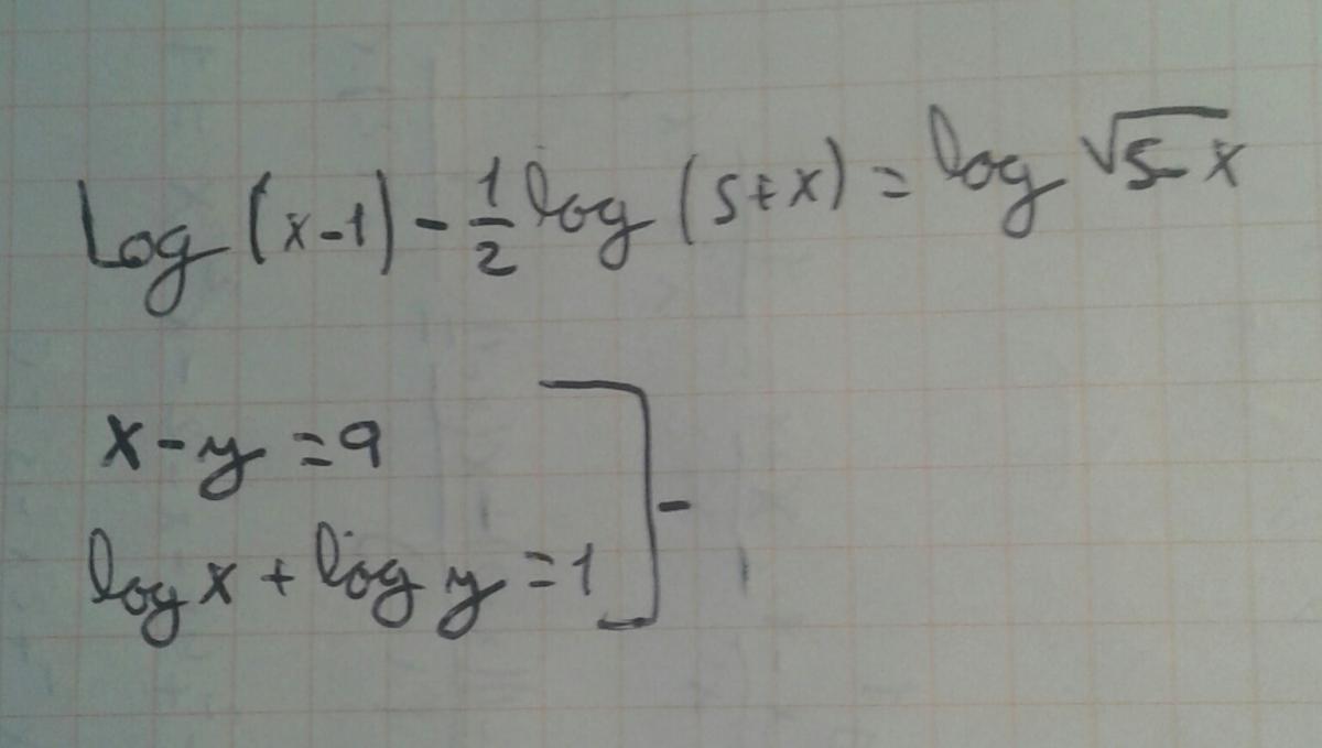 log(x-1)-1/2[log(5+x)] =log√(5-x)