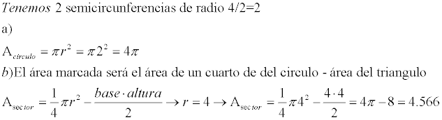 Ejercicio 109 a) halla el área de la zona sombreada figura a). Datos lado del cuadrado 4 cm y la figura b) también 4 cm.