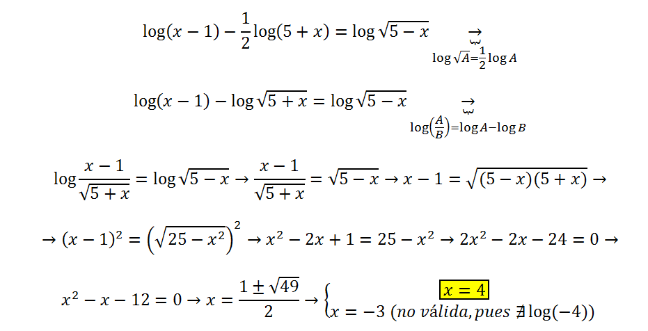 Y si sustituimos en la ecuación original vemos que x1es un solución válida y -3 es falso