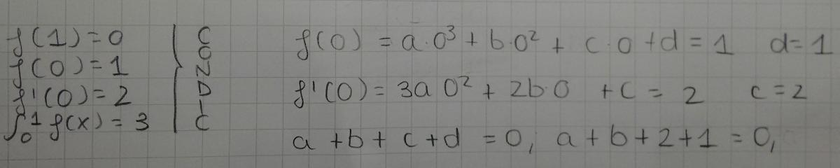 Hola! Me podéis ayudar con este ejercicio? Solo consigo 3 ecuaciones, no se hacer la ecuación de la integral entre 0 y 1 vale 3. Adjunto foto con lo que tengo del ejercicio. Gracias!!