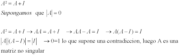 El enunciado de un ejercicio de matrices: "Dado una matriz cuadrada A tal que A²=A+I, donde I es la matriz identidad. ¿Se puede asegurar que A admite inversa?
