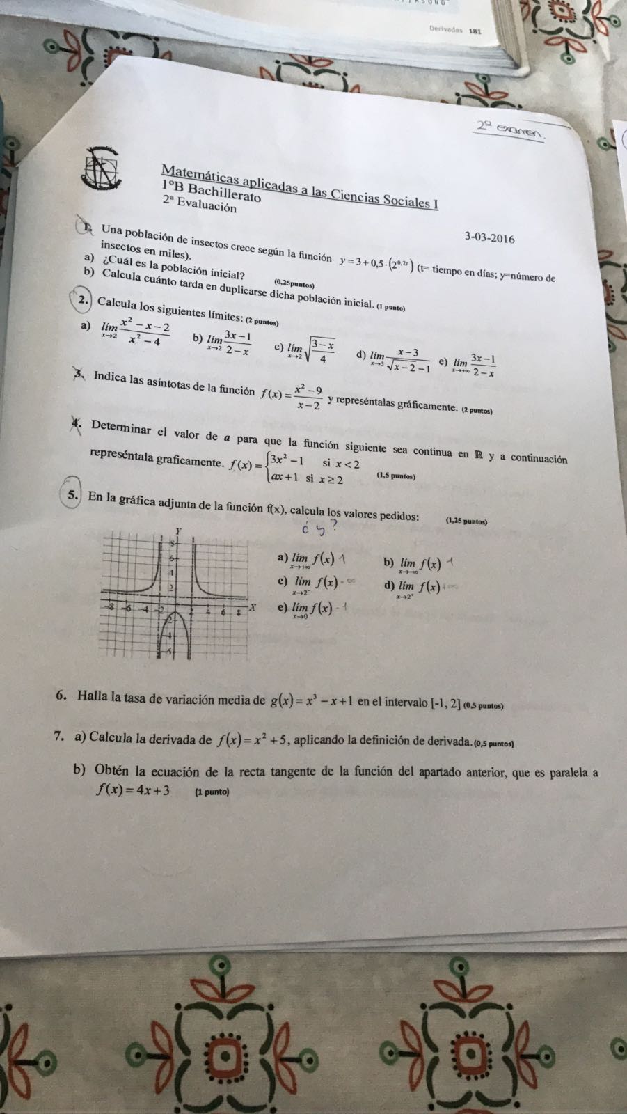 y(0) = 3 + 0,5 · 20,2·0 = 3 + 0,5 · 20 = 3 + 0,5 · 1 = 3 + 0,5 = 4,5 miles de insectos