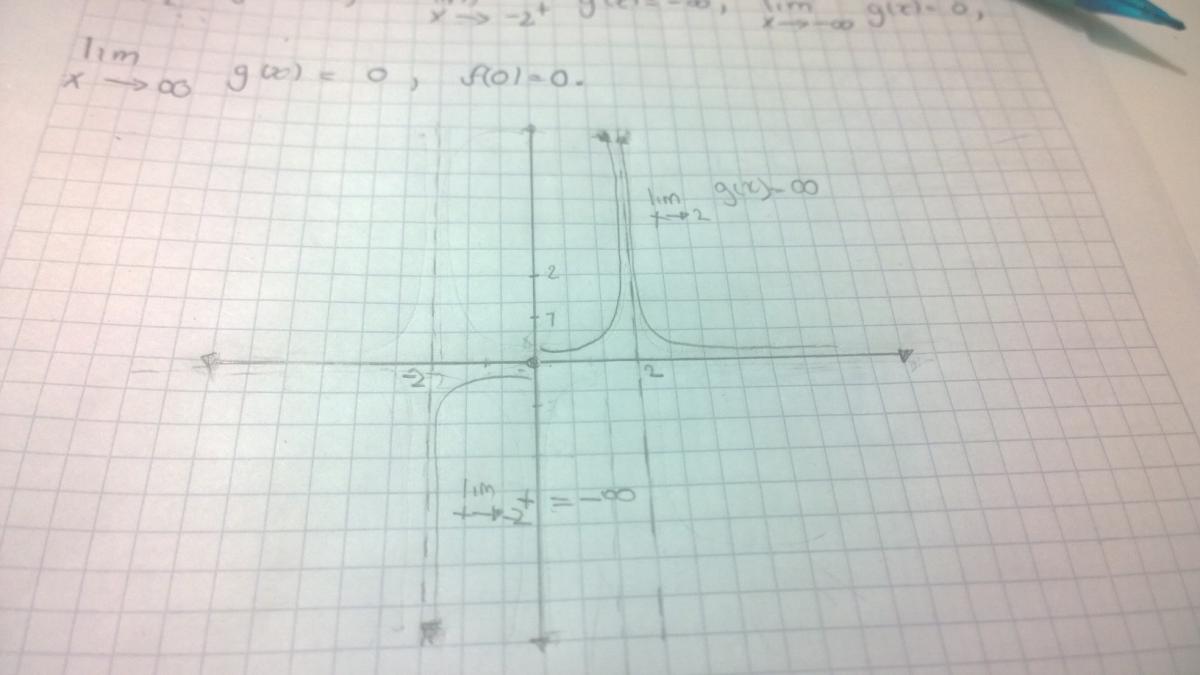 hola he hecho la grafica del punto 5 pero no se si esta bien podrian ayudarme enviando una foto o algo es que en la parte donde dice que las asintotas horizontales tiendan a cero no estoy segura de como trazarlas sin que intervengan con las otras asintotas verticales y el punto f(0)=0
