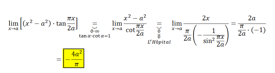 Lím(x→a) (x2 - a2)*tan(πx / 2a) = sustituimos el segundo factor: