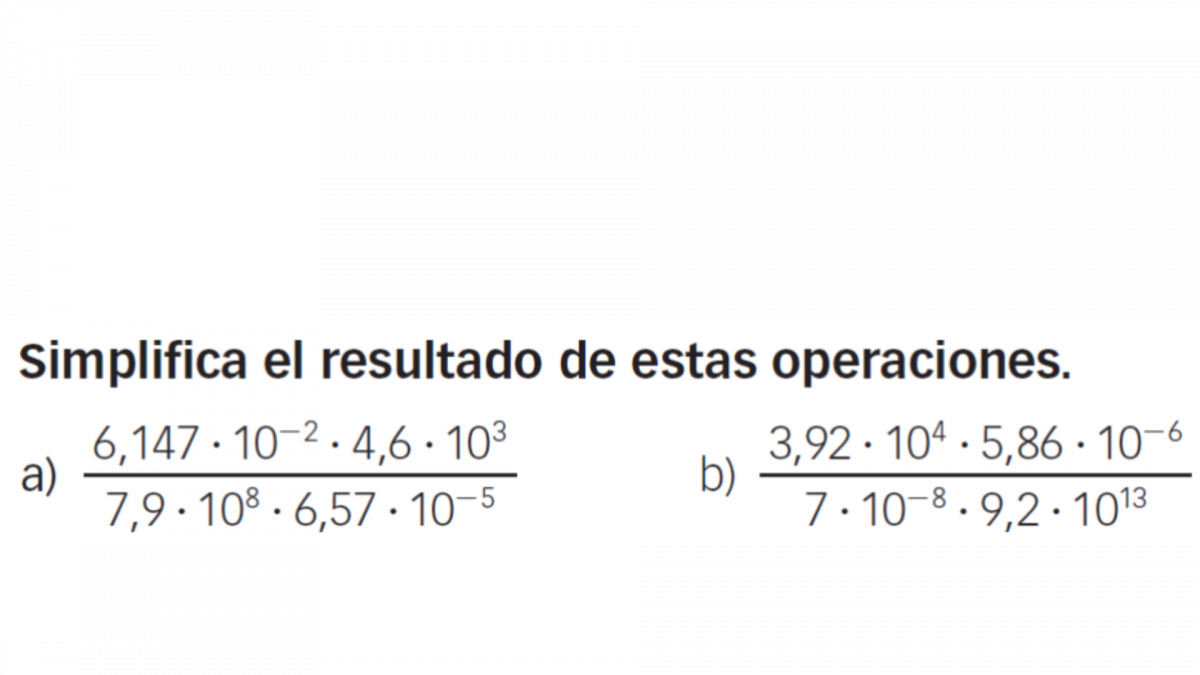 b) Primero opera (usando la calculadora) los números decimales, y luego opera las potencias (usa las propiedades de las potencias).