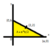 luego, planteamos que el triángulo está en el primer cuadrante, y corta a los ejes OX y OY en los puntos de coordenadas A(a,0) y B(0,b), respectivamente;