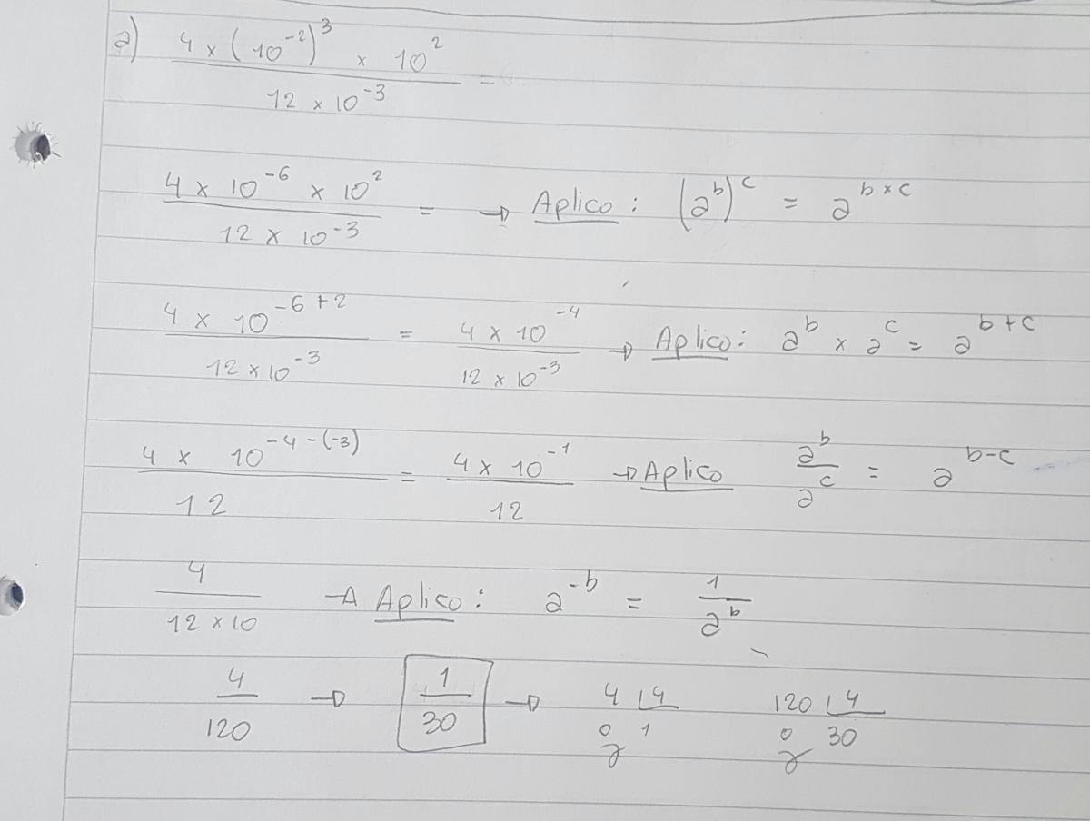 4*(10-2)3*102 / 12*10-3 = aplicamos la propiedad 1 en el numerador: