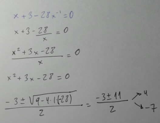 En la segunda el exponente de x-1 es lo mismo que 1/x de modo que te queda x+2/28x = 0 (Esta es fácil no?)