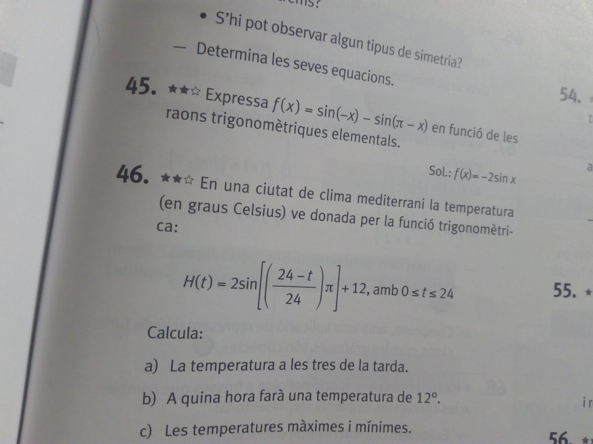 Ejercio 46: En una ciudad de clima mediterráneo la temperatura (en grados Celsius) viene dada por la función trigonométrica: