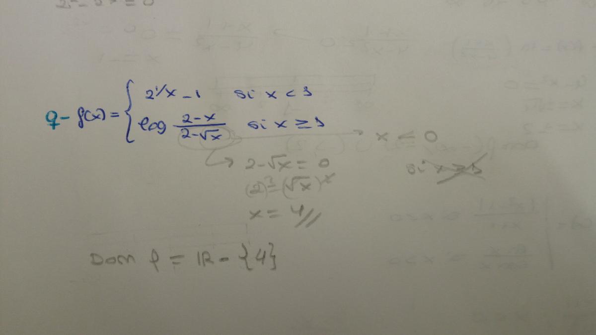 (2-x) / ( 2-√(x) ) para x ≥ 1, observa que no está definida para x = 4