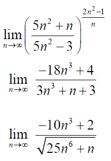 Lím(n→∞) n3*(-10 + 2/n3) / n3*√((25 + 1/n5) = simplificamos = Lím(n→∞) (-10 + 2/n3) / √(25 + 1/n5) = resolvemos = (-10 + 0) / √(25 + 0) = -10/5 = -2.