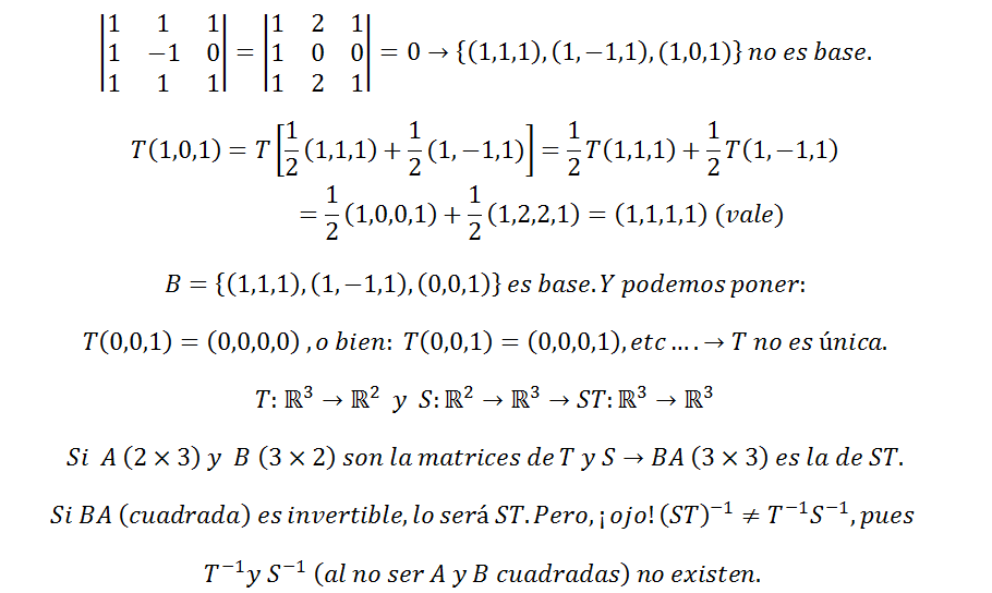 b) Existen transformaciones lineales T: R3 →R2 y S: R2 →R3 tales que la composición ST: es invertible.