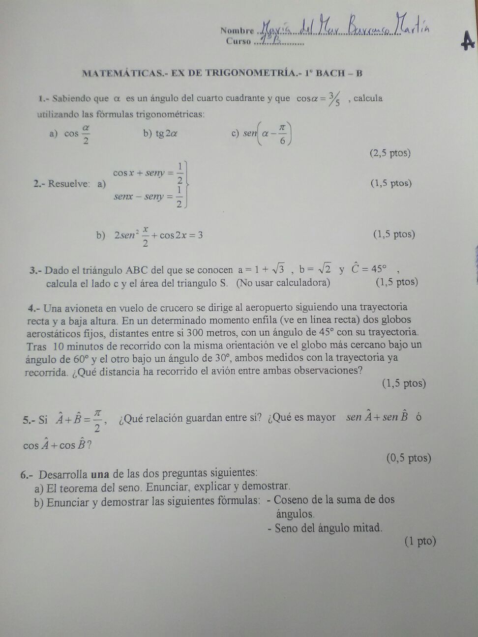 Necesito ayuda para resolver los 5 primeros ejercicios de este examen, una amiga ha suspendido con un 1 y está muy deprimida, quiero intentar ayudarle a entender los ejercicios para la recuperación. Gracias por todo de antemano. ![]()