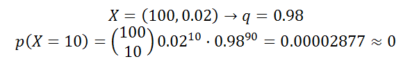 2) El 2% de los tornillos son defectuosos. Se empaquetan en cajas de 100. Halla la probabilidad de que en ese paquete haya 10 defectuosos.