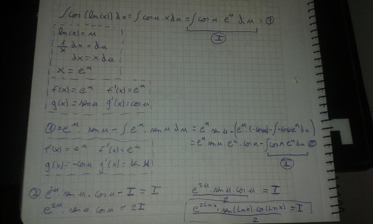 Perdon por lo desprolijo, crei que iba a ocupar menos espacio jaja, si se hace sustitucion lnx, y despues dos veces por partes y se resuelve como toda integral ciclica. Si algo no se entiende comentalo que paso el ejercicio