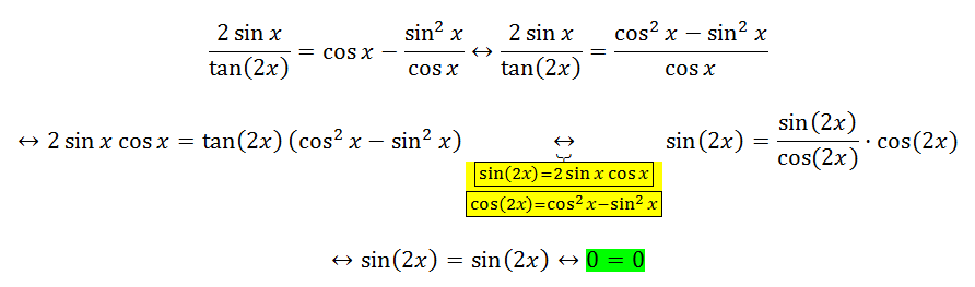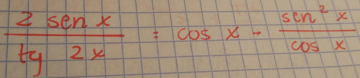 2sen de alfa /tg(2alfa)=cos de alfa-sen^2de alfa/cos de alfa