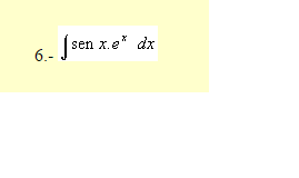 I = senx*ex - ( cosx*ex - ∫ ex*(- senx*dx ), resolvemos signos en la integral y queda: