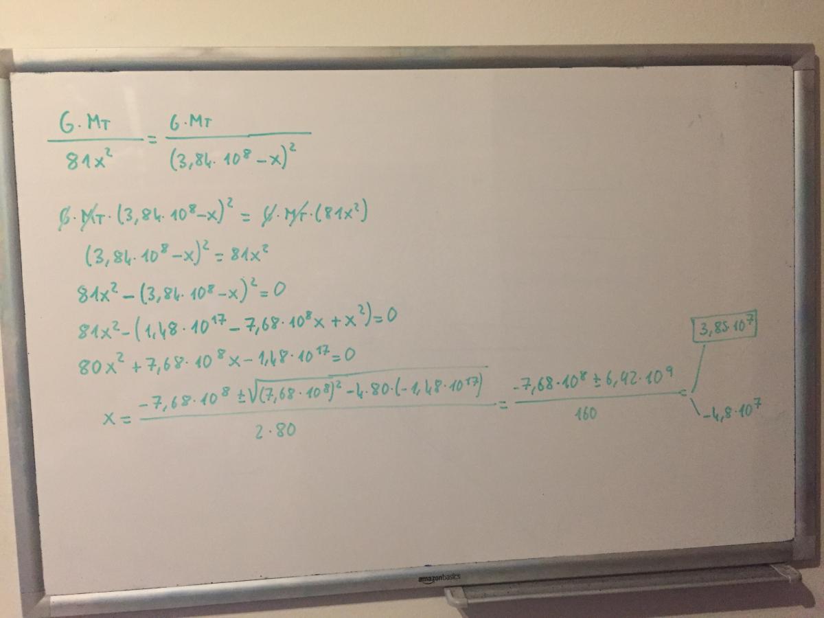 Tengo el siguiente problema de Física, pero no entiendo la parte matemática. Además, tampoco entiendo la parte de simplificar y ordenar para obtener la ecuación de segundo grado. Otra duda que tengo es como resolver esa ecuación de segundo grado pues es con notación científica. Espero que me la puedan explicar la parte matemática del problema. Gracias de antemano. Un saludo.