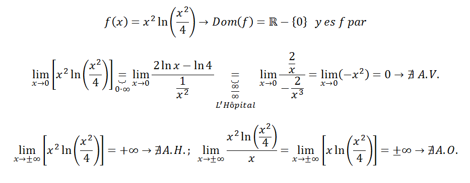 Buenos dias. Alguien me podria mostrar como verificar si hay asintotas en esta funcion? y=x^2 .Ln(x^2 /4)