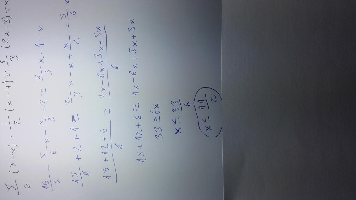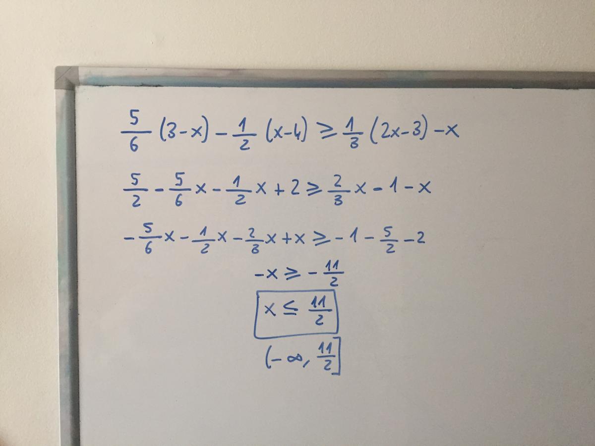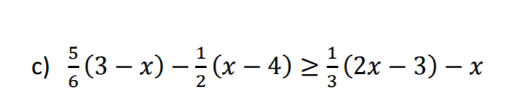 - x ≥ - 5, multiplicas en ambos miembros por -1 (observa que cambia la desigualdad) y queda: x ≤ 5 (2).