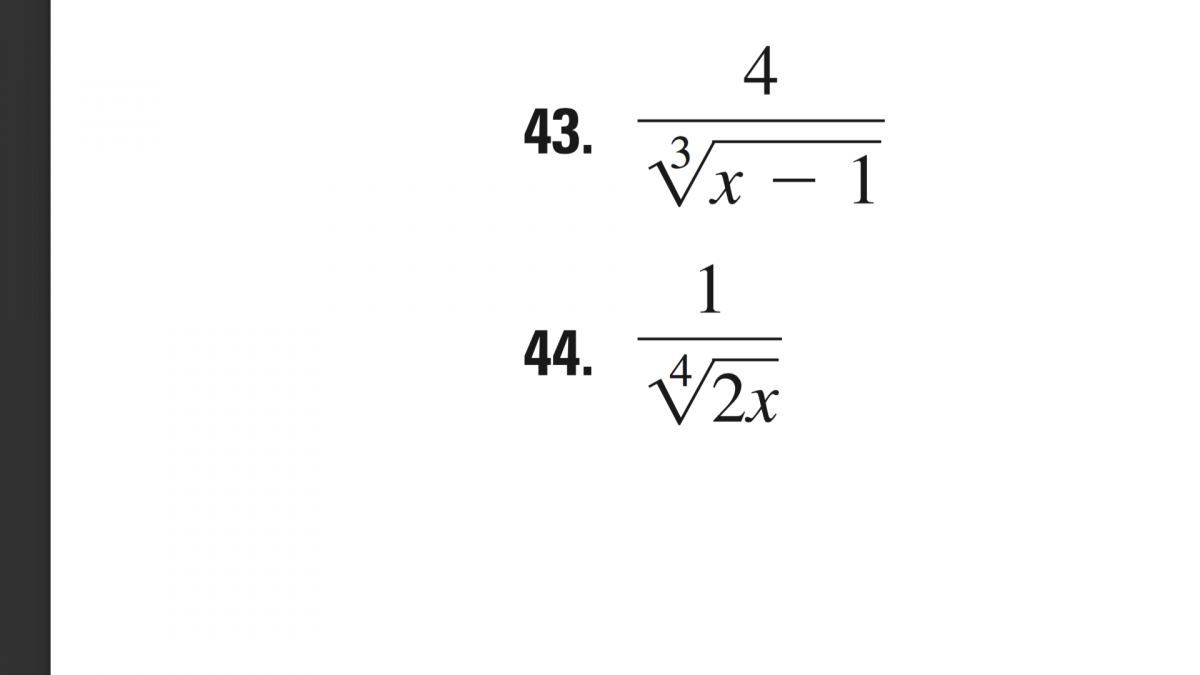 1/∛(x - 1) = 1*∛((x - 1)2) / ∛(x - 1)*∛((x - 1)2) = resolvemos el numerador y asociamos raíces en el denominador: