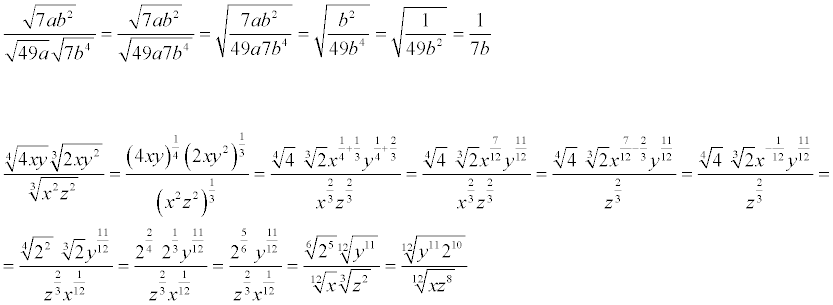 Si el ejercicio consiste en racionalizar denominadores, observa que estos son unimembres, por lo que debemos multiplicar al numerador y al denominador por la raíz "complementaria" del denominador.