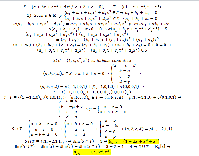 2) Halla una base de (S+T) y otra de (S intersección T)