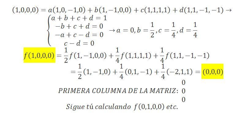 Hola buenas. En este ejercicio, se hacer todo pero para ello necesito sacar la matriz de la aplicación lineal y es lo que no me sale. Podría explicarme alguien como sacarla??