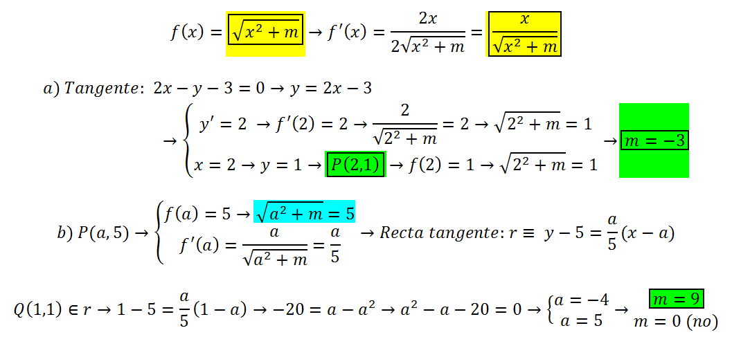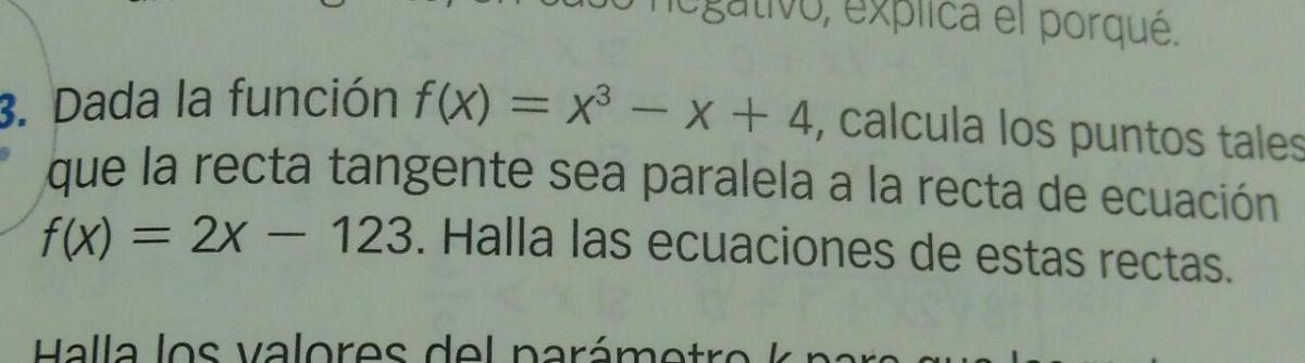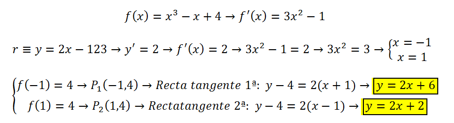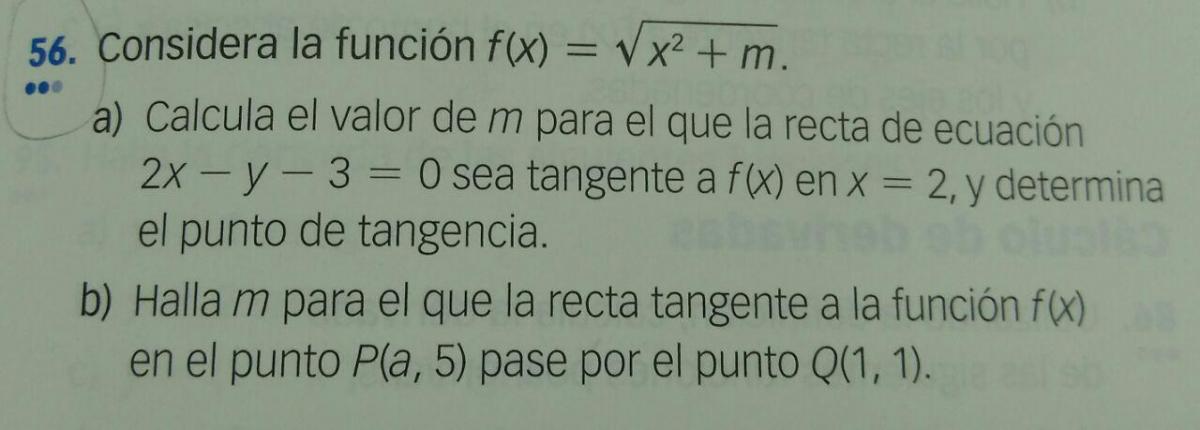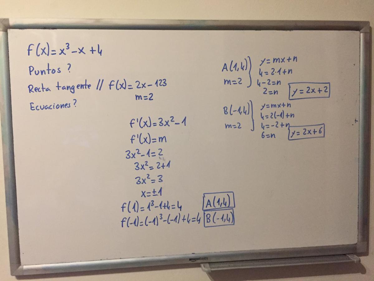 Con lo cual debes hallar los puntos que te faltan para hallar la recta tangente y luego igualar para hallar por los puntos por los que pasa.