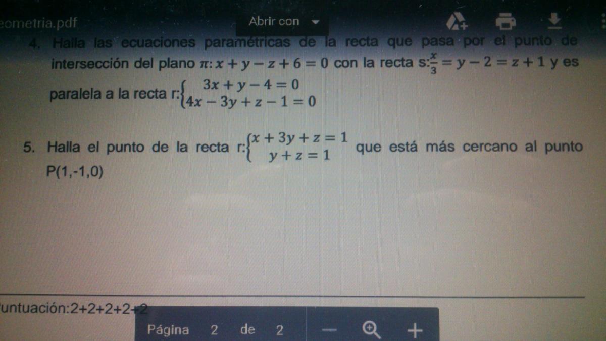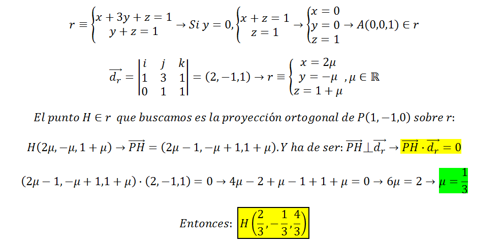 Por tanto tendrás que hacer una recta perpendicular a la recta del sistema, y que además pase por el punto (1, -1, 0). Donde esa recta perpendicular corte a la recta del sistema, será el punto más cercano a (1,-1,0).