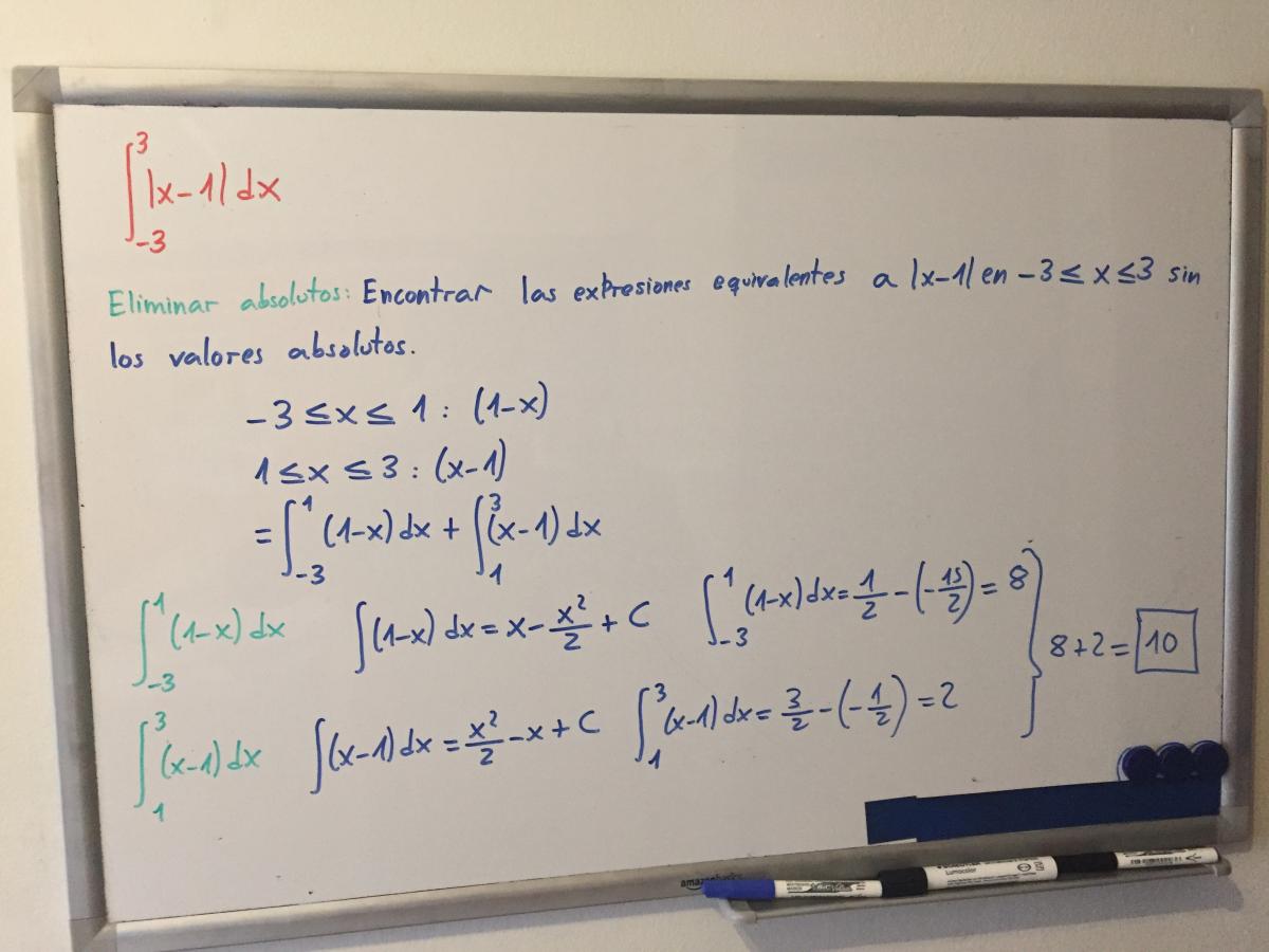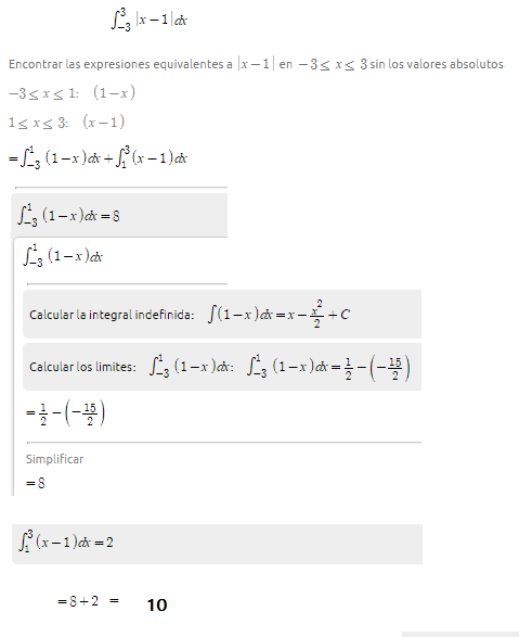 ∫ |x-1|dx (está definoda entre 3 y -3; no se ponerlo)