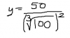 y = 50 / ( ∛(100) )2, mulatiplicamos por (1/2)* 2 (que es igual a 1) y queda: