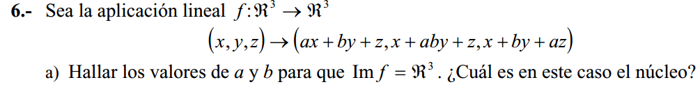 Luego, si se cumplen las tres conciciones remarcadas, tenemos que los tres vectores imágenes de los vectores canónicos del dominio son linealmente independientes, y por lo tanto constituyen una base de R3, que es el conjunto imagen de la aplicación lineal f.