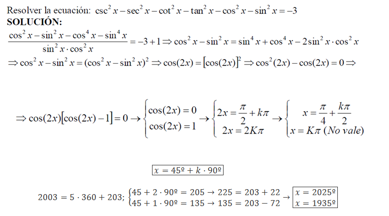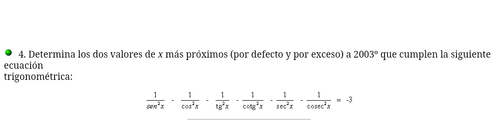 Luego, los valores remarcados aproximan por defecto y por exceso al ángulo cuya medida es α = 2003°.
