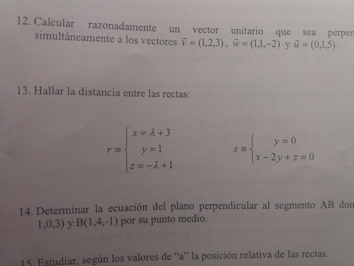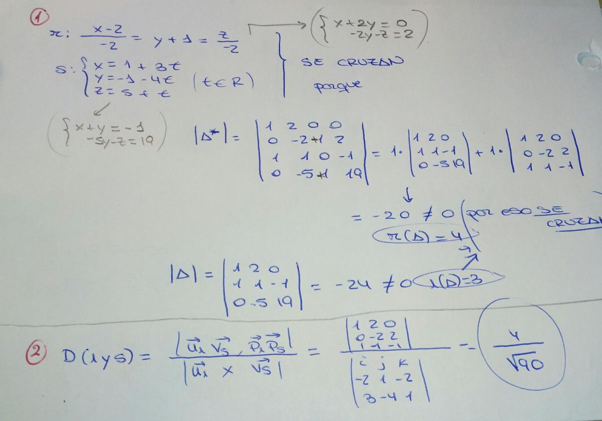 En el apartao 1 tenia que averiguar si las dos rectas se cruzan y en el apartado 2 la distancia entre la recta s y r.