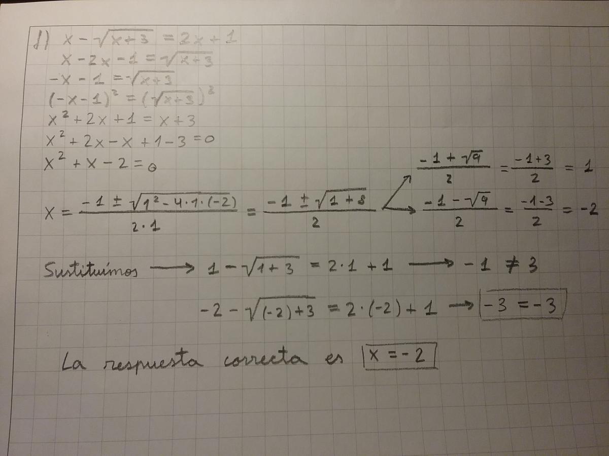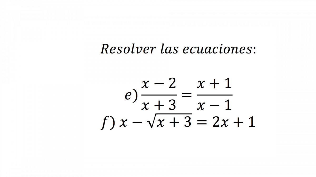 e) Observa que x no puede tomar el valor -3, y tampoco puede tomar el valor 1.