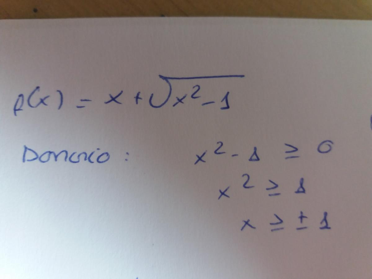 |x| ≥ 1, que nos conduce a dos opciones: x ≤ -1 o x ≥ 1, por lo que el dominio de la función queda: D = (-∞,1] u [1,+∞).