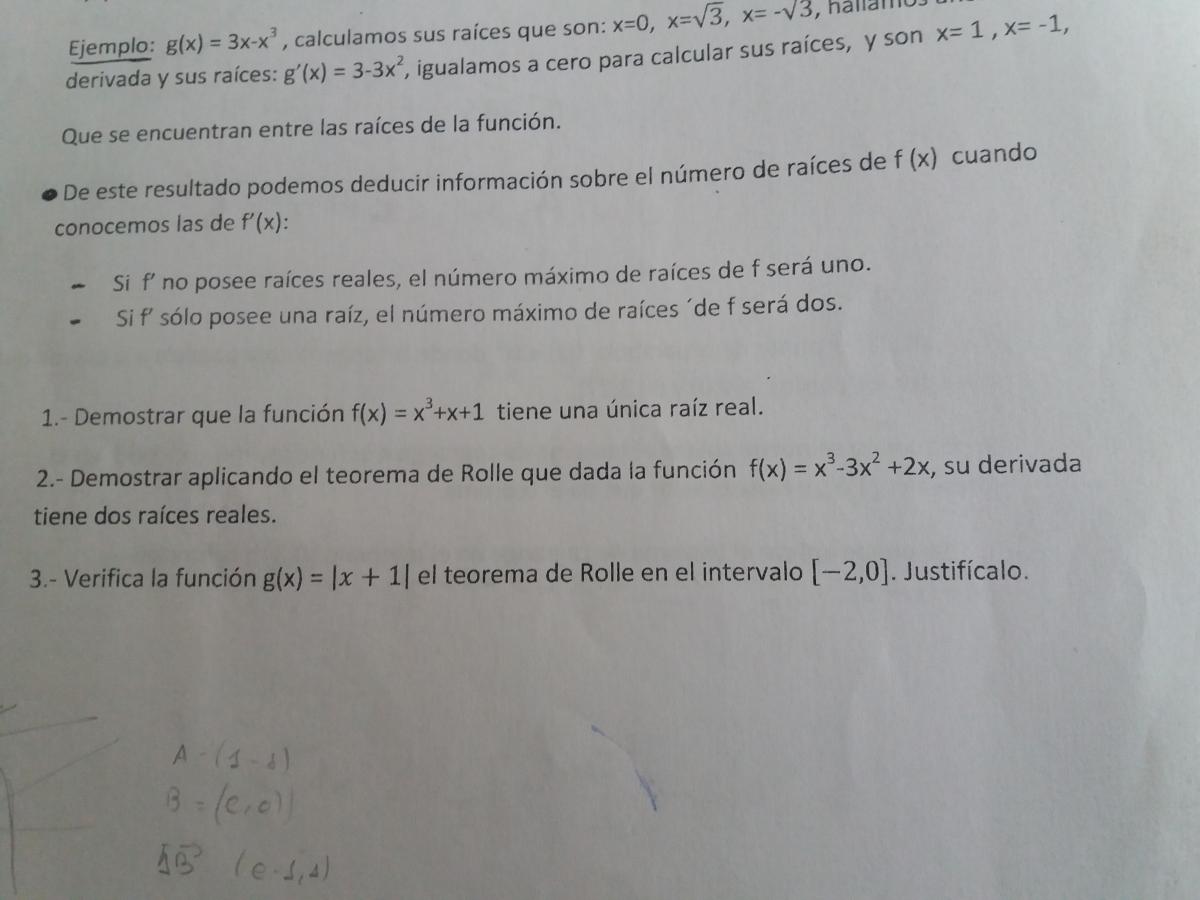 f(x) = x3 + x + 1, cuyo dominio es D = R = (-∞,+∞), y observa que la función es continua y también derivable en todo su dominio.